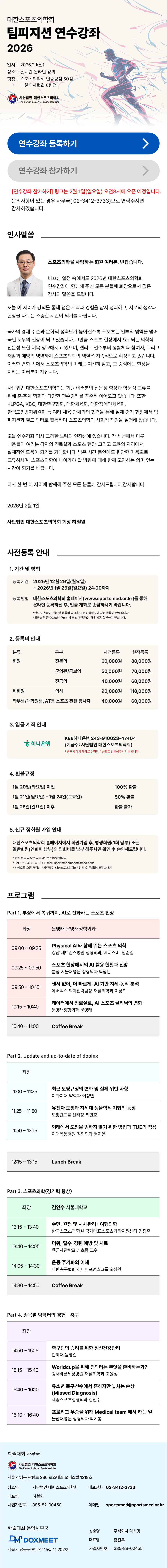 [´ëÇѽºÆ÷Ã÷ÀÇÇÐȸ] 2026³â ÆÀÇÇÁö¼Ç ¿¬¼ö°Á ¾È³»